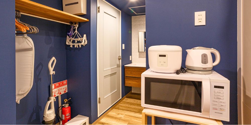 | アメニティ | ハンドタオル / 歯ブラシ・歯磨き粉 / バスタオル / シャンプー / リンス / ボディーソープ / ドライヤー / 羽毛布団 / 髭剃り / シャワートイレ / 綿棒 / くし・ブラシ 電子レンジと製氷機は2階の宿泊者様専用共有ラウンジにございます。 【有料貸し出しグッズ】 ・バスタオル・フェイスタオルの追加 1式 550円 |